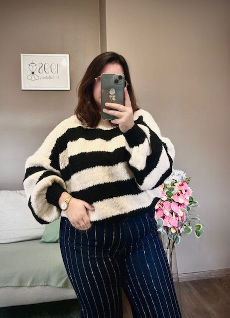 Découvrez notre pull à rayures avec manches bouffantes, une pièce incontournable pour un style à la fois confortable et élégant. Les rayures apportent une touche classique et intemporelle, tandis que les manches bouffantes ajoutent du volume et de la féminité à votre silhouette. Parfait pour les journées en ville ou les moments détente, ce pull se marie facilement avec vos pièces préférées. Une création pensée pour vous mettre en valeur avec assurance et douceur.